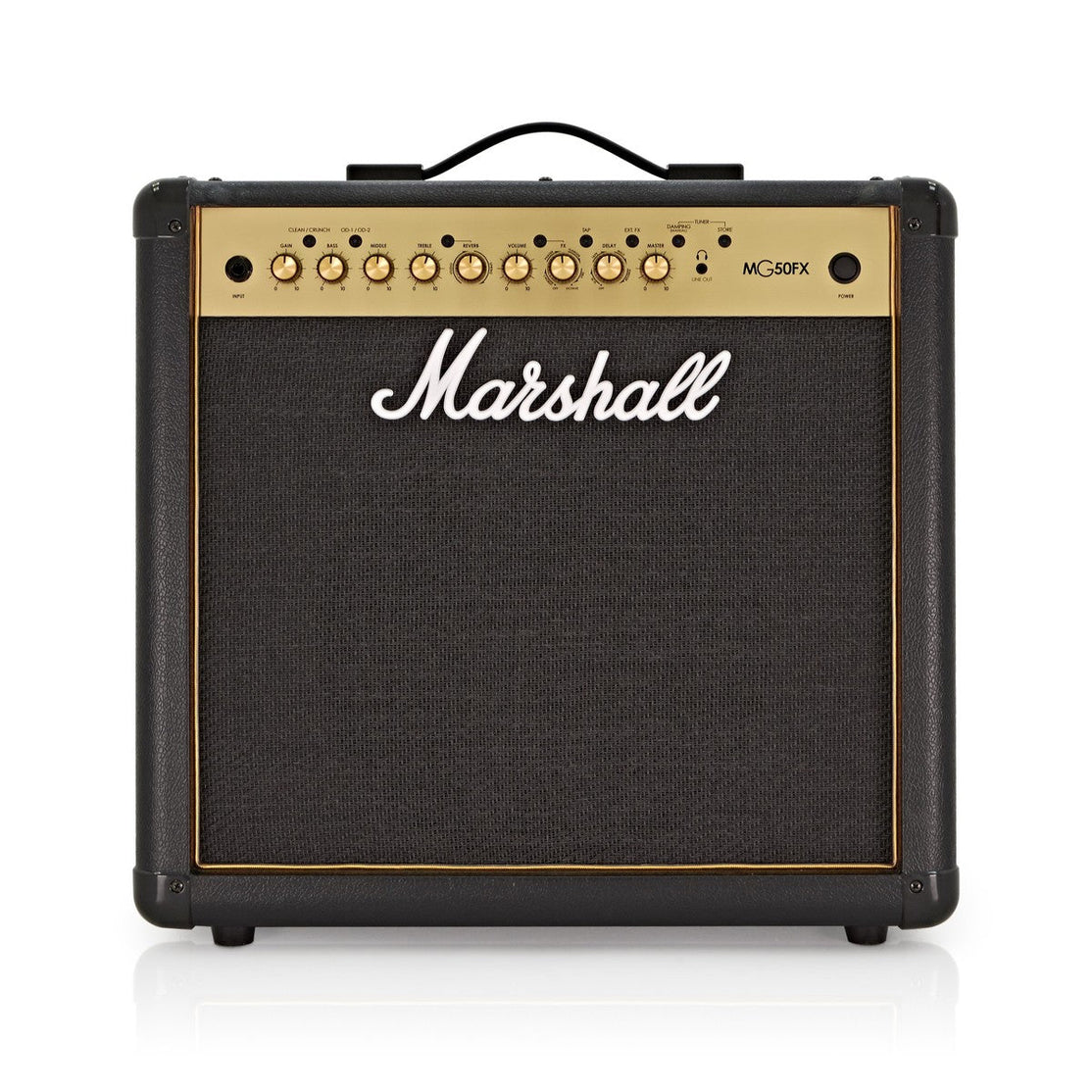 Marshall MG50GFX được tải với âm thanh thuần túy với công suất là 50W. Bộ khuếch đại bao gồm 4 kênh (Clean, Overdrive, OD1 và OD2) để bạn có thể chuyển đổi giữa âm thanh sạch và giòn, với kênh tăng tốc khả dụng ở cả chế độ “xanh và đỏ”. Có thể định hình bằng EQ ba băng tần, hiệu ứng Reverb, Delay và các hiệu ứng kỹ thuật số khác. Ngoài ra, MG50GFX còn cung cấp cho bạn một công tắc chân 2 nút, vòng lặp hiệu ứng có thể chuyển đổi, bộ chỉnh âm tích hợp và đầu vào đường truyền cho trình phát nhạc. Đầu ra tai nghe và đường truyền mô phỏng cũng được tích hợp sẵn. Là một phần của sê-ri MG Gold của Marshall, MG50GFX rất phù hợp cho phòng thu và sân khấu.