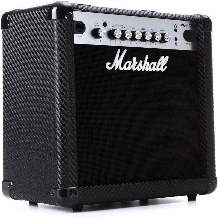 The Marshall MG Series MG Series MG15CFR 15W 1x8 Guitar Combo Amp is an ideal amp for practicing and even performing in small to medium settings. Boasting a bold carbon fibre clad look, solid digital effects and MG's critically acclaimed, analogue tonal heart, the MGCF Series has arrived and is already the practice amp choice of some of the world's leading players.
