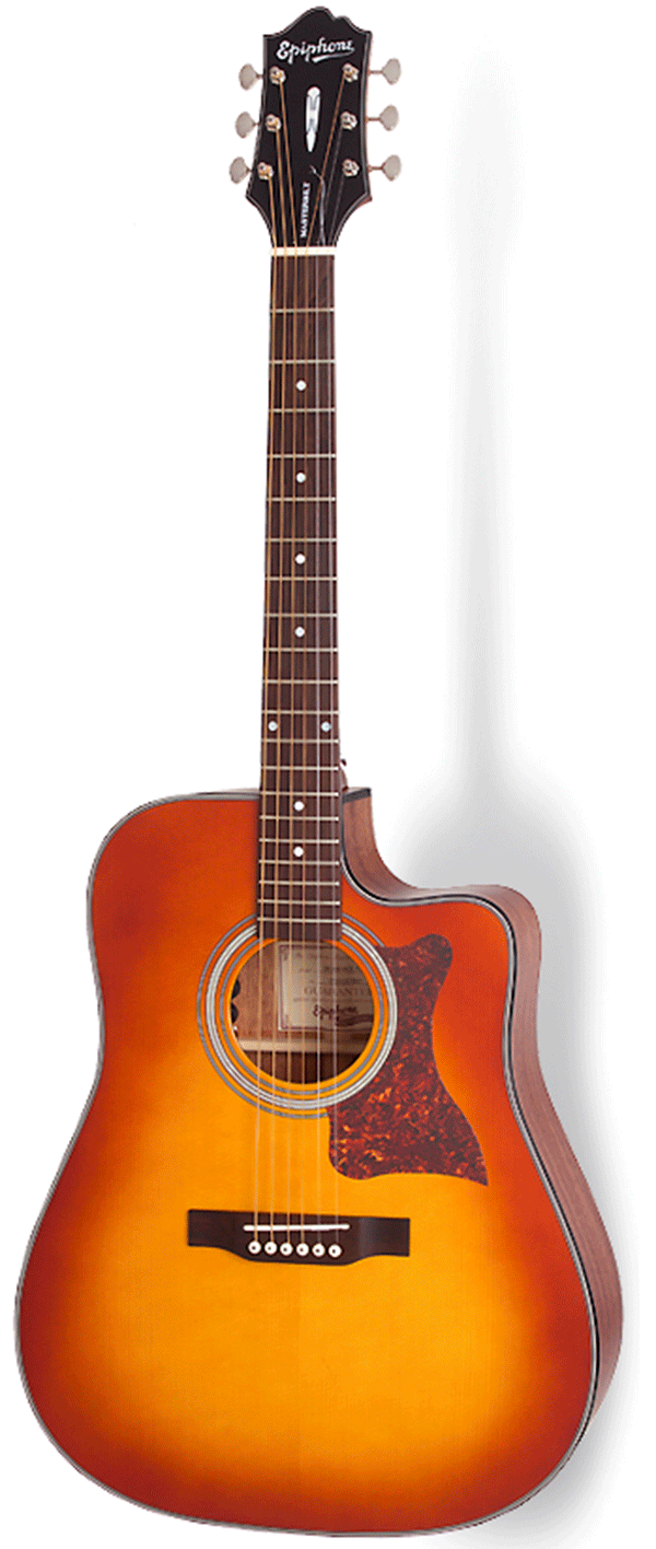 -Epiphone DR400MCE cũng được thiết kế với thông số gỗ "All Solid, đặc điểm nổi bật của dòng Masterbilr .