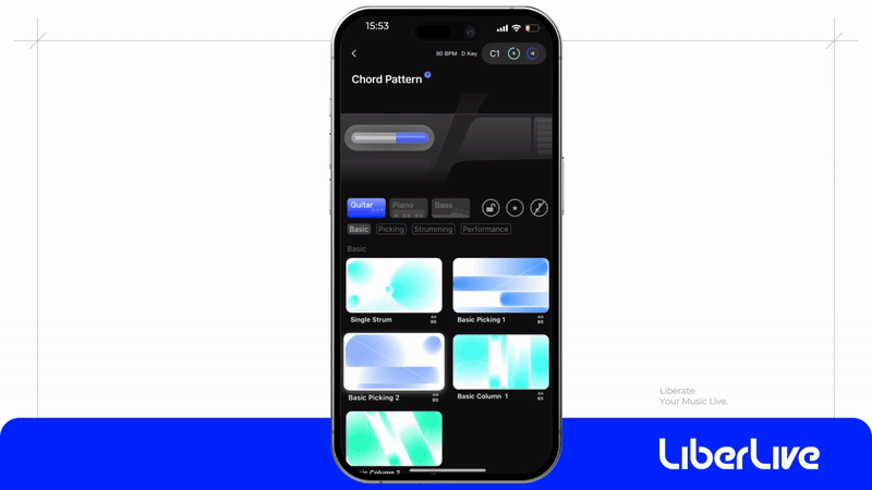 Ứng dụng LiberLive cung cấp các bảng hợp âm tương tác giúp việc chơi nhạc trở nên đơn giản hơn bao giờ hết. Chỉ cần làm theo hướng dẫn hợp âm và đèn LED chỉ báo, bạn sẽ dễ dàng hát và chơi nhạc ngay từ khi bắt đầu.