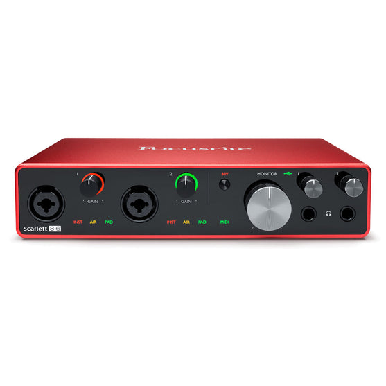 Focusrite Scarlett 8i6 là giao diện âm thanh 8 đầu vào, 6 đầu ra cho những người đam mê âm thanh analog. 8i6 với mic-pres kép, line I/O và MIDI cố định cho bạn kết nối phù hợp để dễ dàng đưa thiết lập phần cứng của bạn vào máy tính. 8i6 sẵn sàng ghi âm khi nào bạn muốn. Thiết bị này giúp bạn dành nhiều thời gian hơn để chơi thay vì setup.