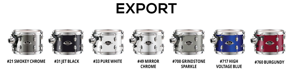 Bộ trống đã tạo ra hàng ngàn huyền thoại trống đang trở lại và mở ra một thế giới hoàn toàn mới và cải tiến. Có sẵn trong các phiên bản sơn phủ hoặc sơn mài, bộ trống Export mới của Pearl được xây dựng mạnh mẽ hơn bao giờ hết để mang đến sự bền bỉ vượt thời gian giúp người chơi trống có được một khởi đầu vững chắc.
