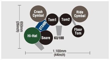 - Cụm kick KU100 cho hoạt động im lặng đối với trống cái, kết hợp tất cả các cymbal 10" và hi-hat lớn, bạn sẽ có một cảm giác tuyệt vời khi chơi trống mà không phải làm phiền người khác.